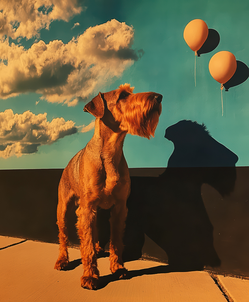 Er sitzt da, aufrecht, geduldig, fast stolz. Dann wieder: neugierig, verspielt, voller Sanftmut. In seinem Blick spiegelt sich etwas, das wir alle kennen – dieses stille Band zwischen Mensch und Tier, das keine Worte braucht. Die KI-Kunst wird hier zur künstlerischen Interpretation von Liebe: bedingungslos, tief, voller Achtung.